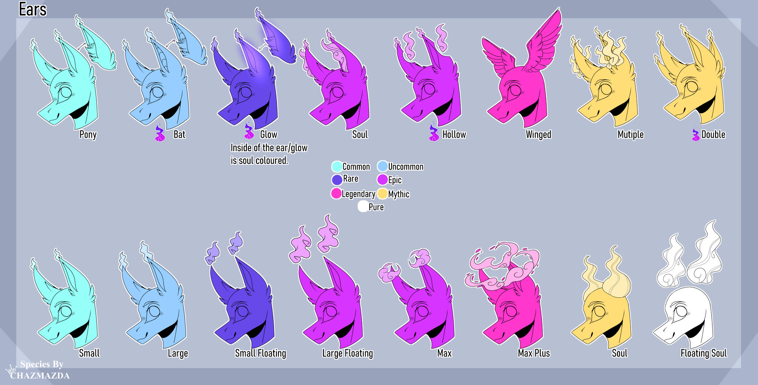 ・❥・Ears like Soul are the full inside of the ear unlike the remnant legendary trait where it is only the bottom.・❥・Soul and floating soul replace the ears completely.・❥・The glowing ear trait, the inside is the same colour as the soul.