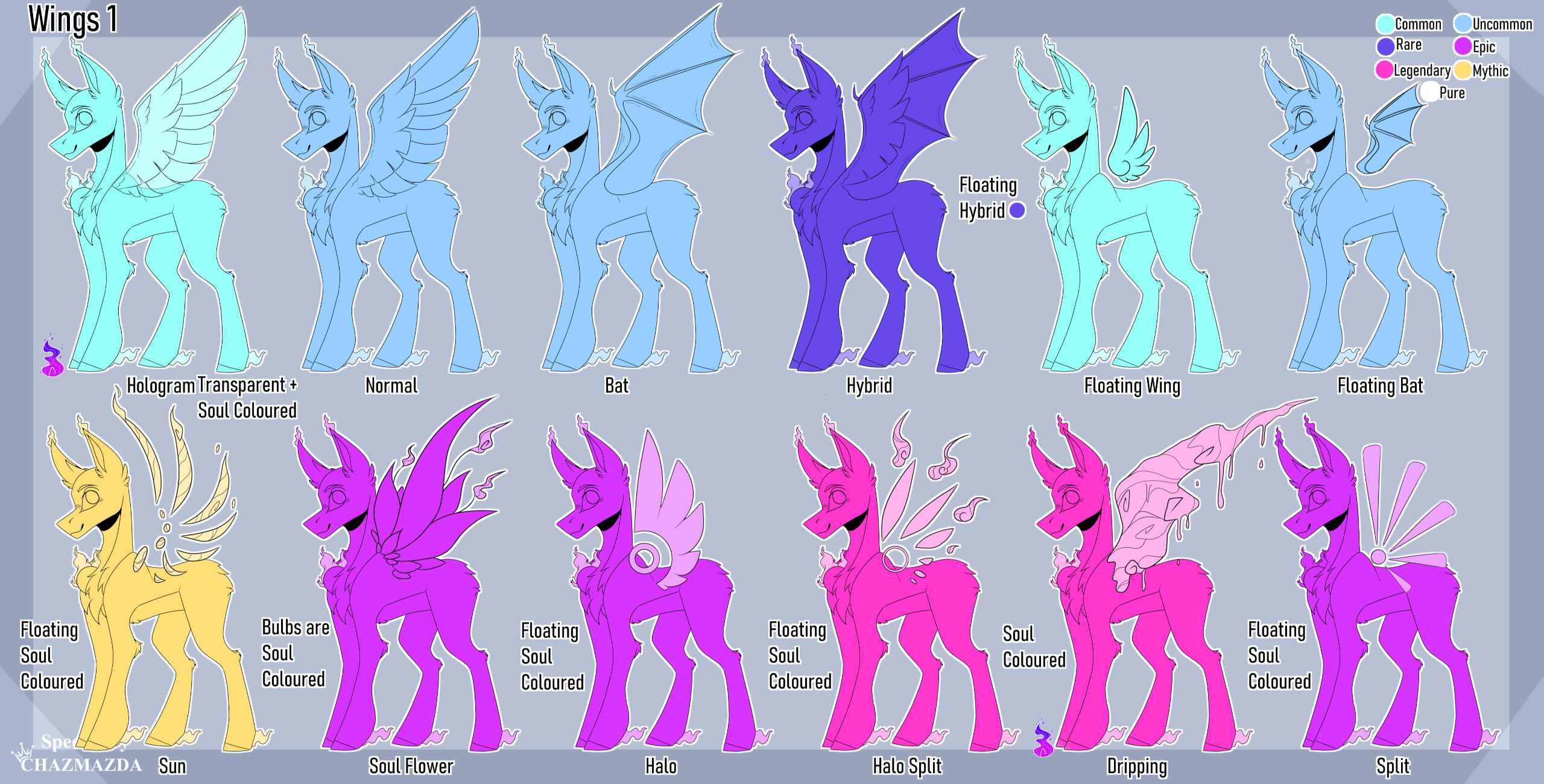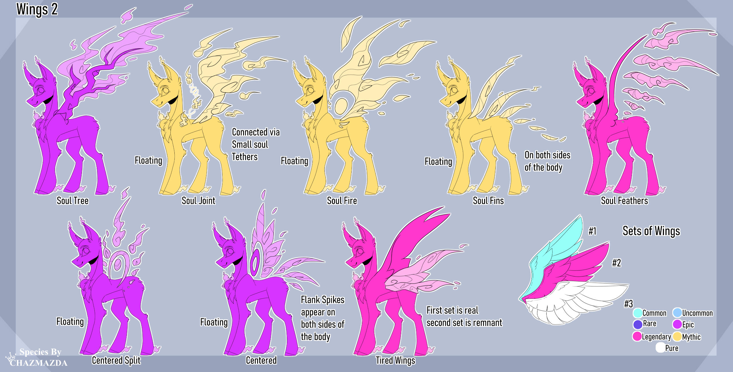 ・❥・Holographic wings can be added to any wings that aren't already soul coloured.・❥・Hybrid wings can also be small floating.・❥・Soul flowers can be added to the "soul tree" wing trait.