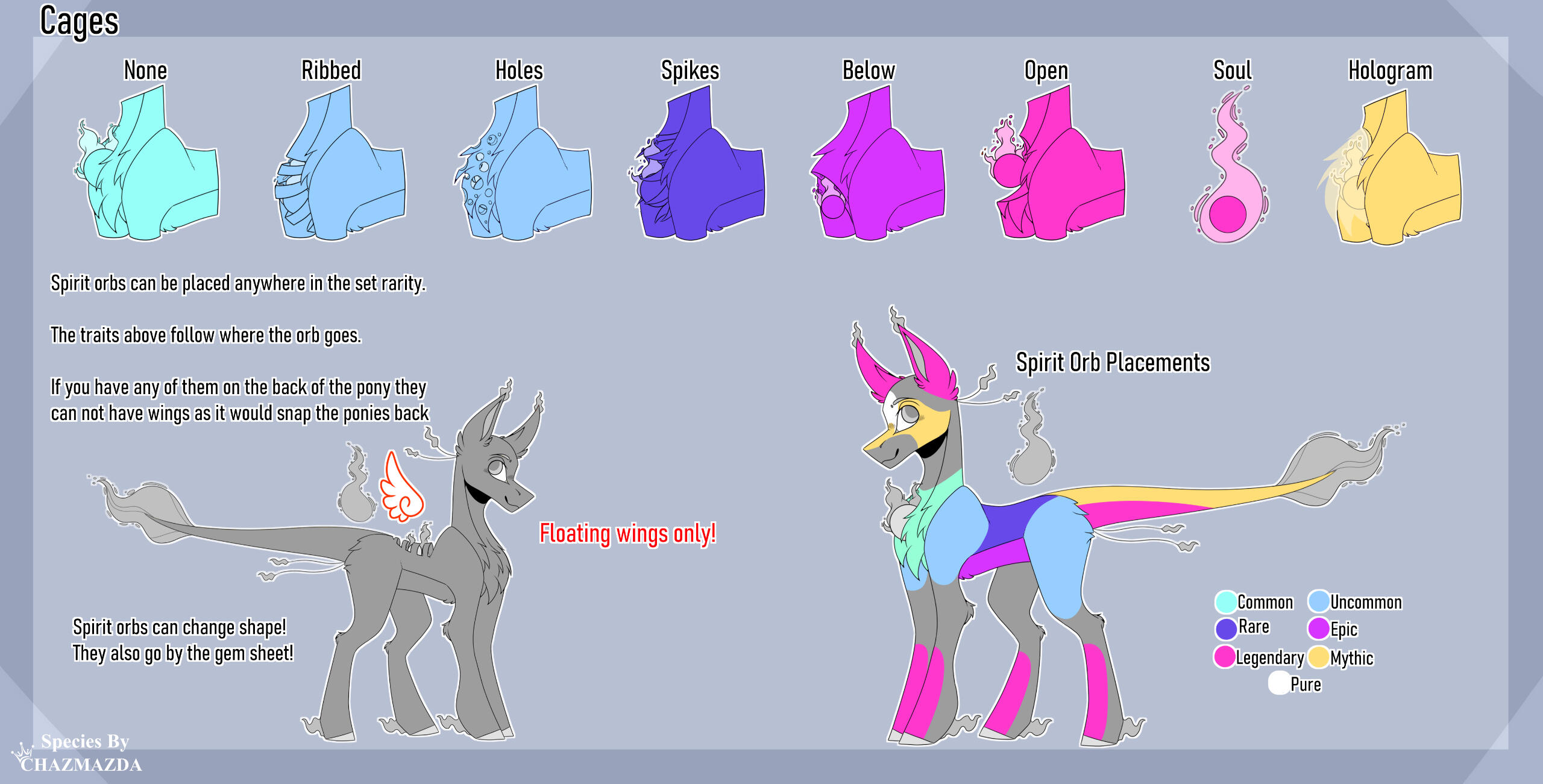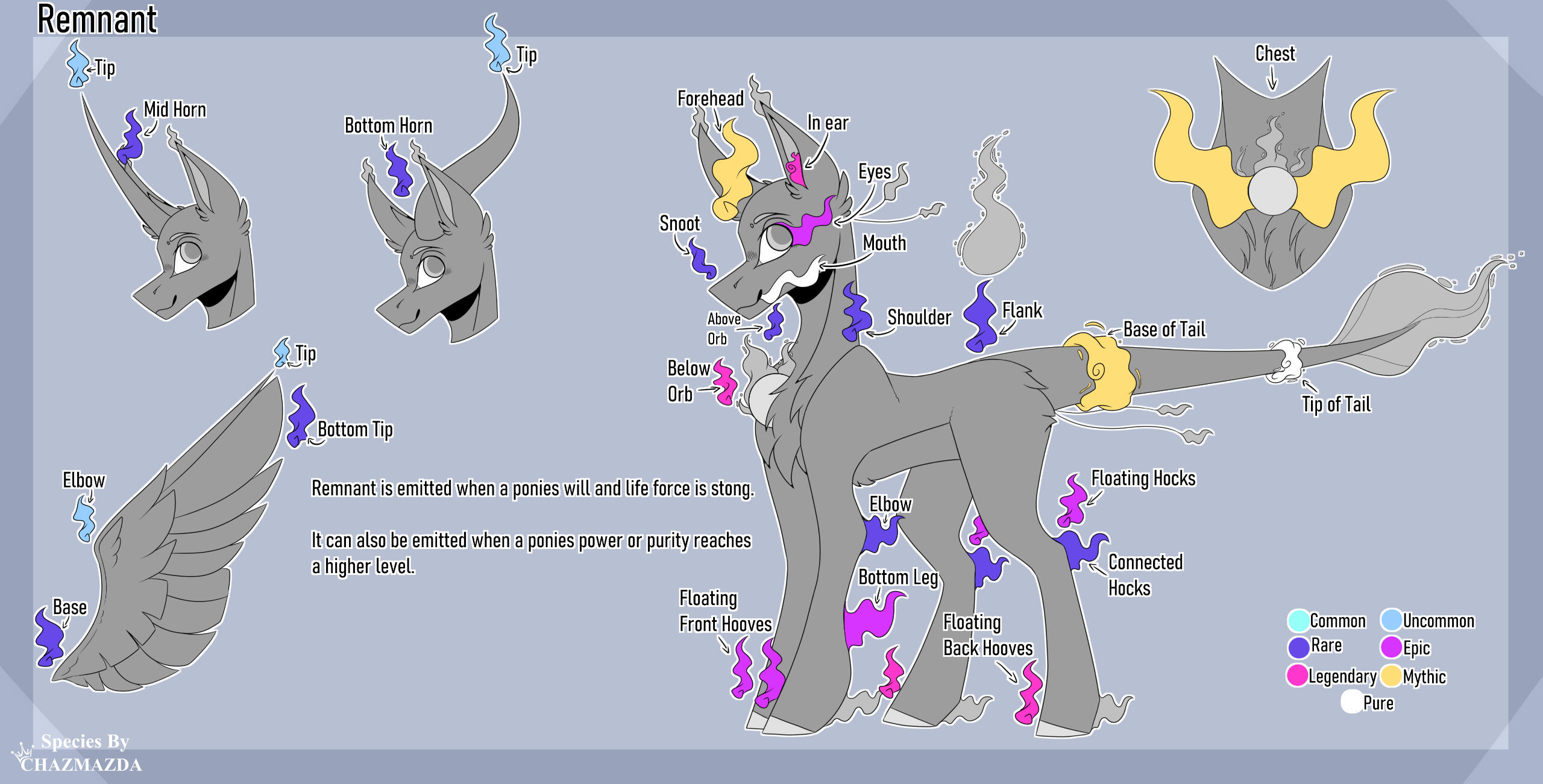 ・❥・Pegasi can not have platforms.・❥・You can mix match front and rear hooves.・❥・Excess Energy emits remnant through the ground from their feet when they walk. It glows.・❥・Raptor claws only appears on the inner hind legs of the pony.