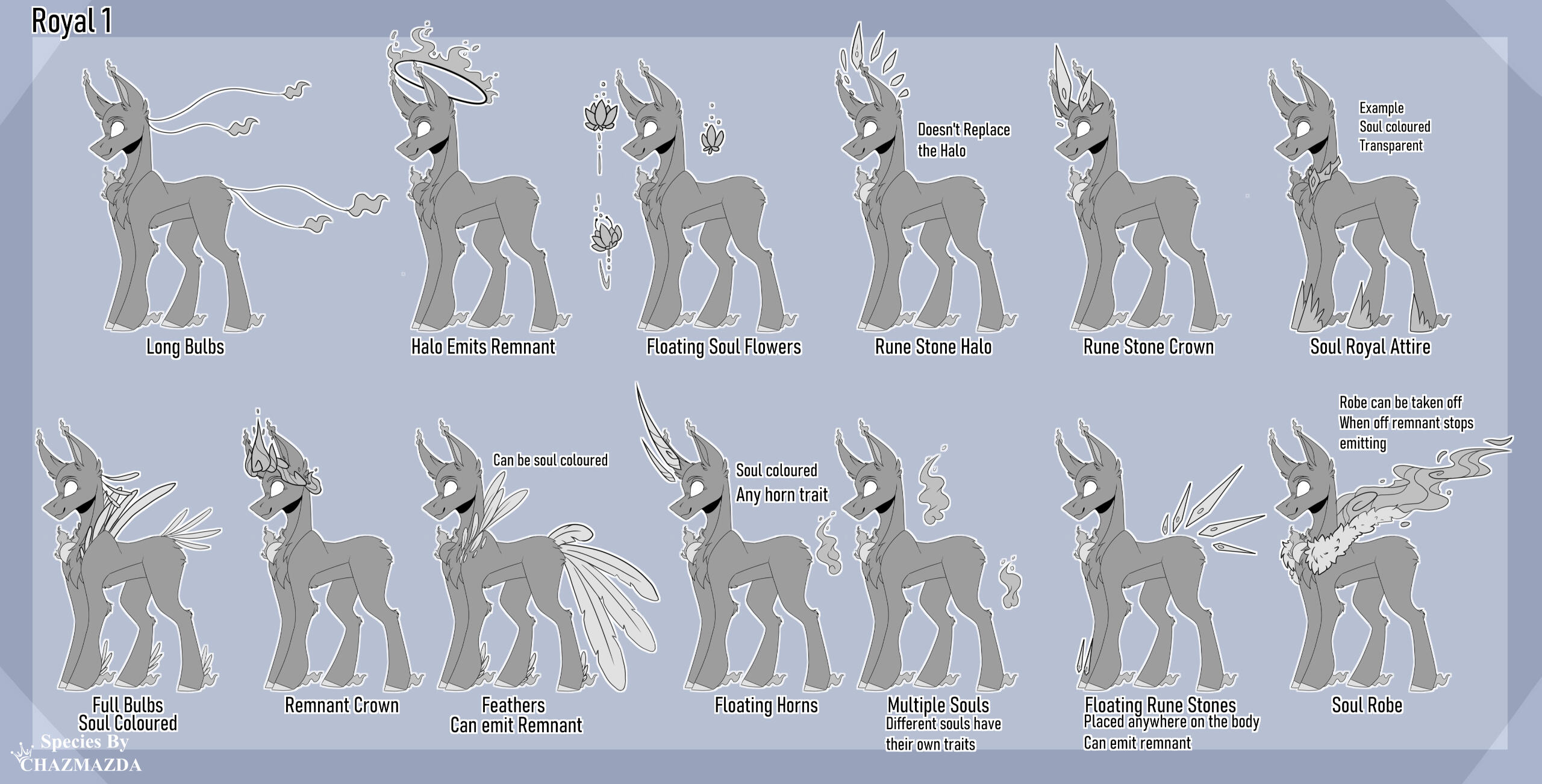 ・❥・Hologram is the same colour as the soul.・❥・ Hologram trait can be mixed with any horn trait on this sheet.・❥・Saber Horn can be flipped so its facing upwards.