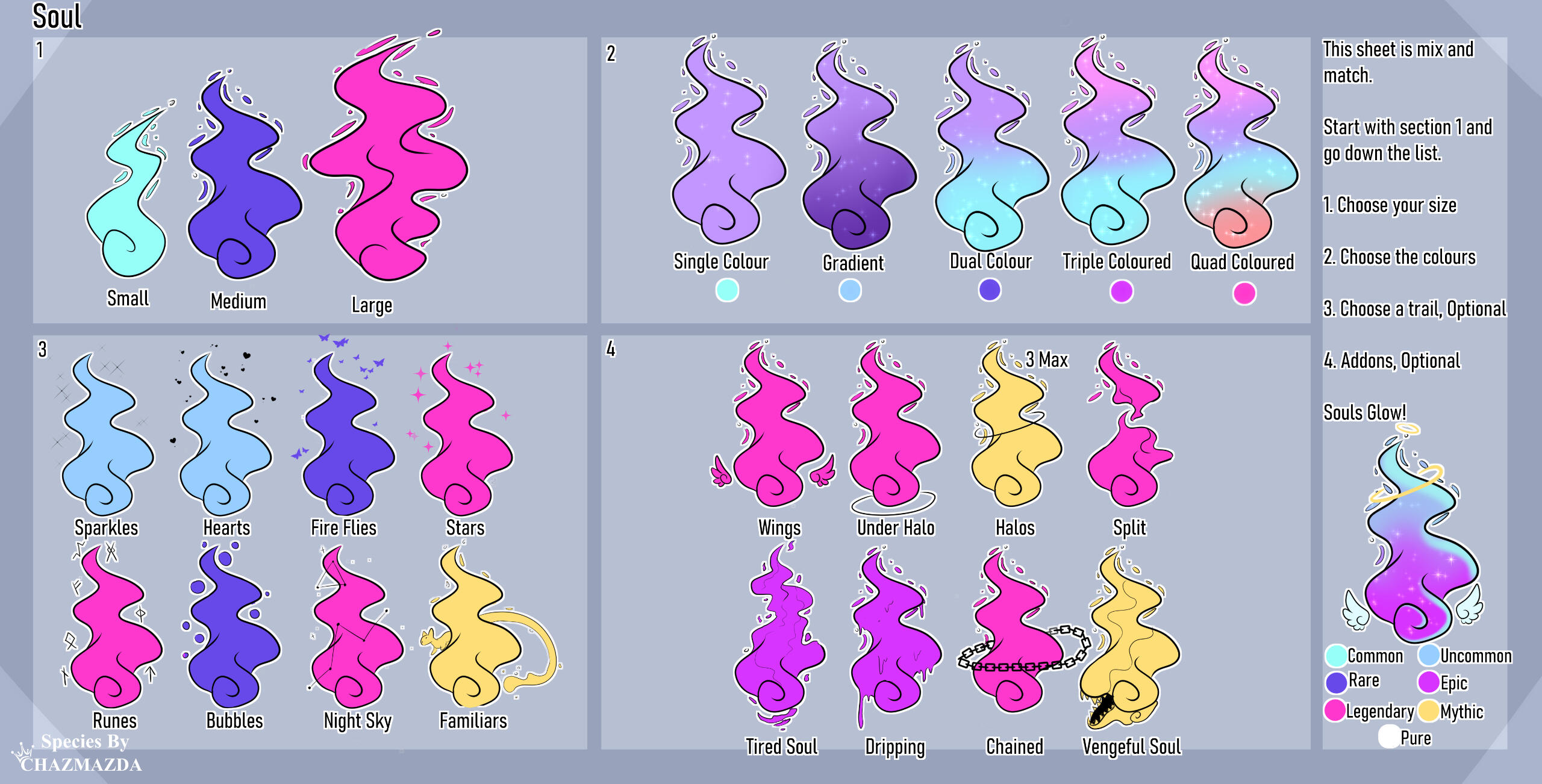 ・❥・Holographic wings can be added to any wings that aren't already soul coloured.・❥・Hybrid wings can also be small floating.・❥・Soul flowers can be added to the "soul tree" wing trait.
