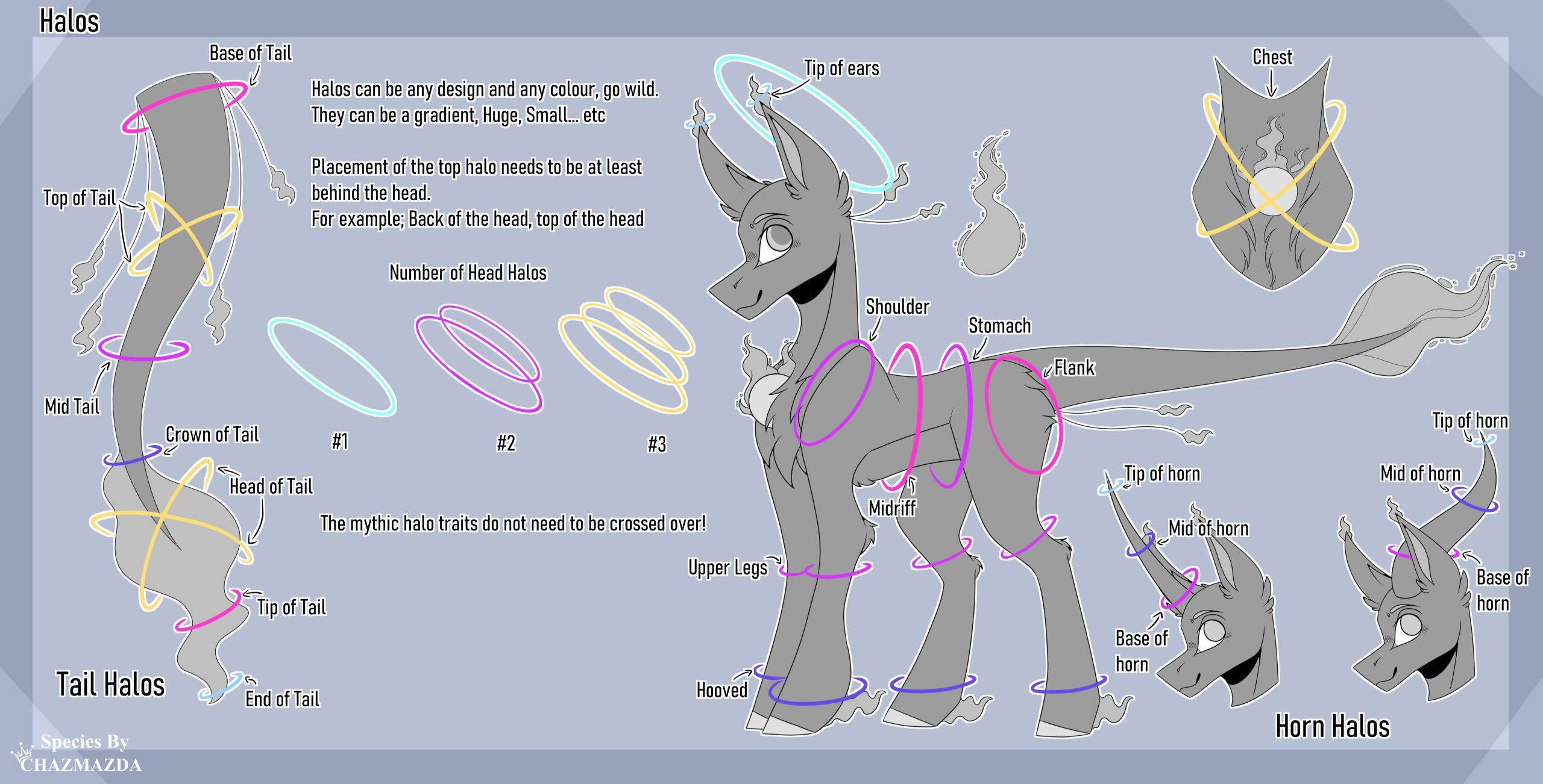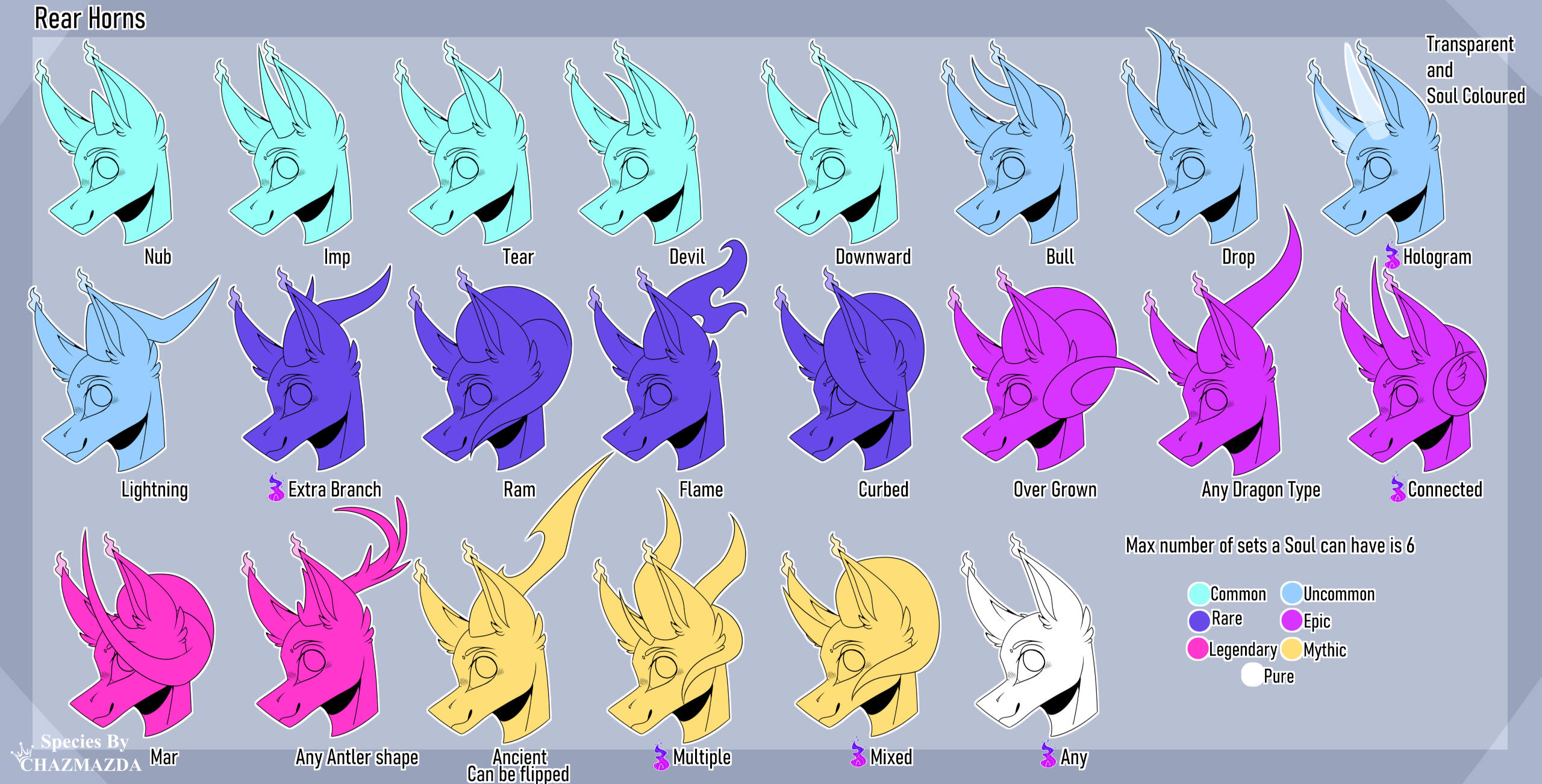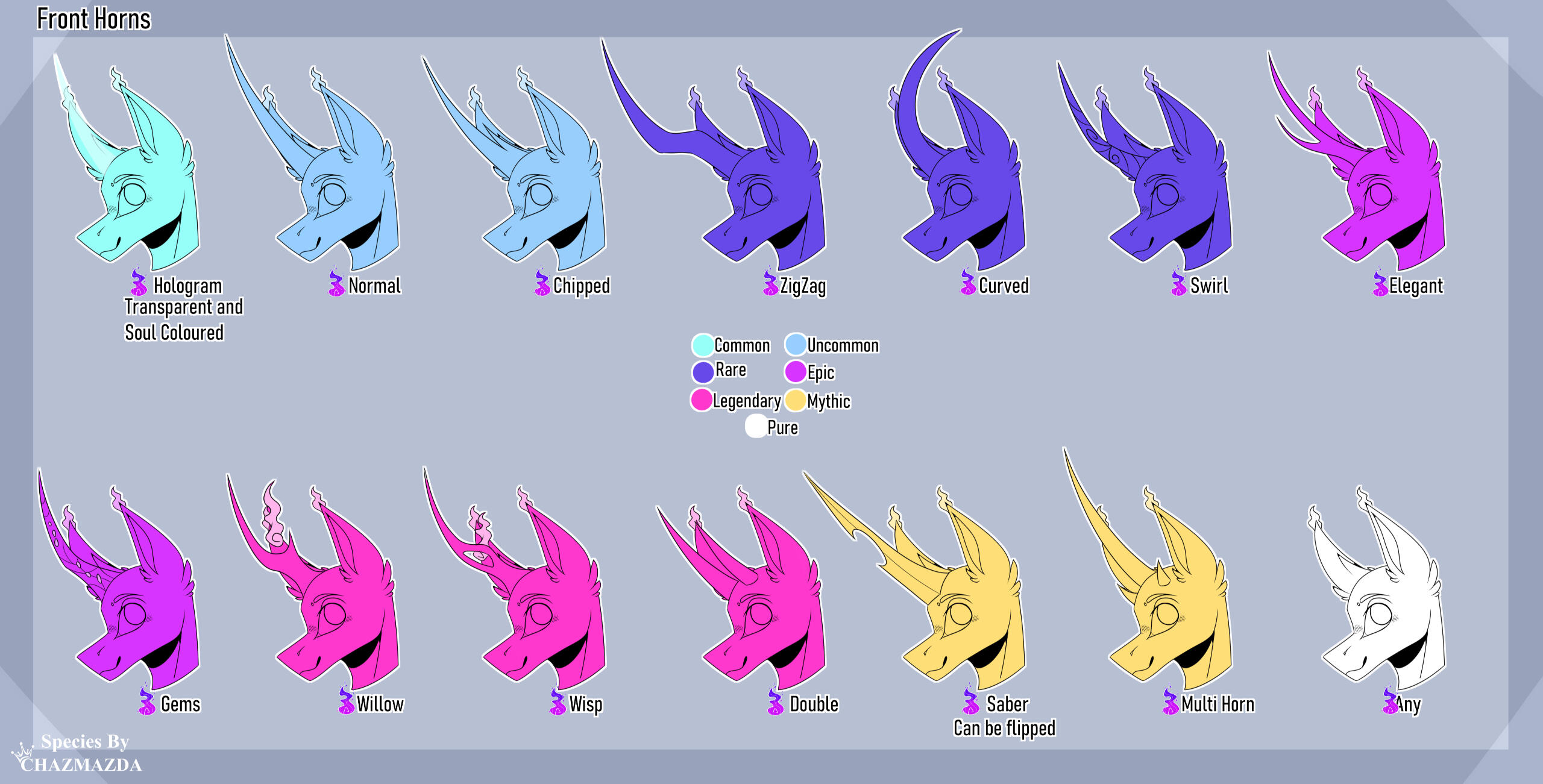 ・❥・Hologram is the same colour as the soul.・❥・ Hologram trait can be mixed with any horn trait on this sheet.・❥・Saber Horn can be flipped so its facing upwards.
