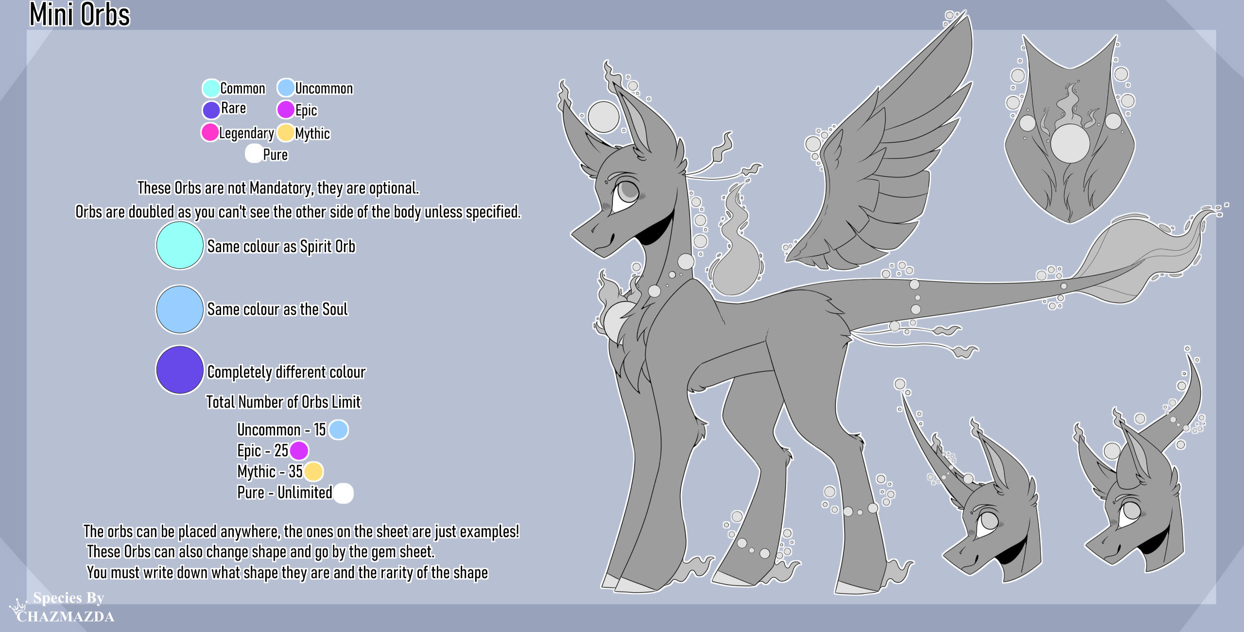 ・❥・Mini Orbs are optional!・❥・They can be played anywhere on the body, the trait sheet are examples of placements.・❥・They are small orbs and can't be too big.・❥・They glow and have three rarity's;